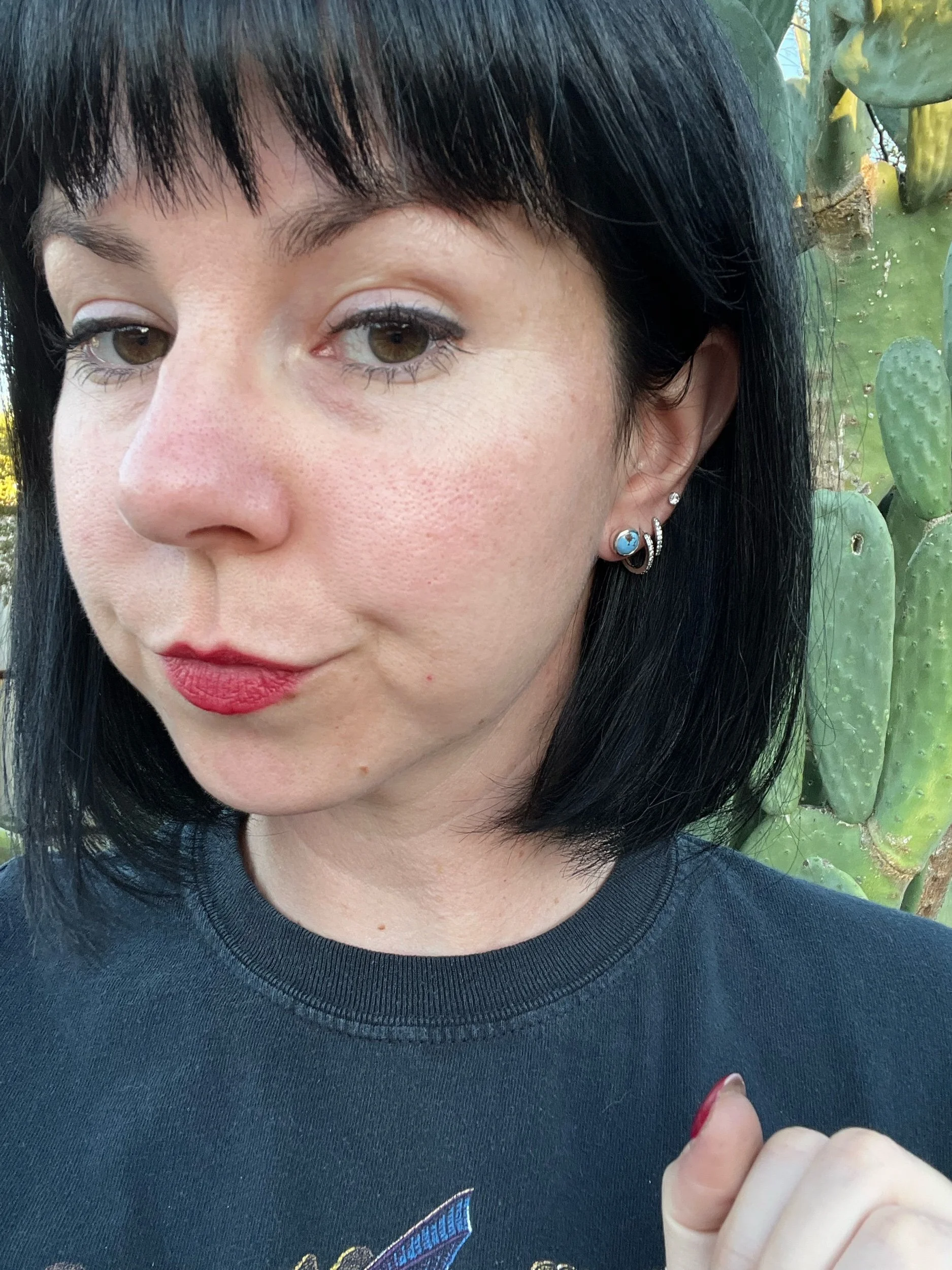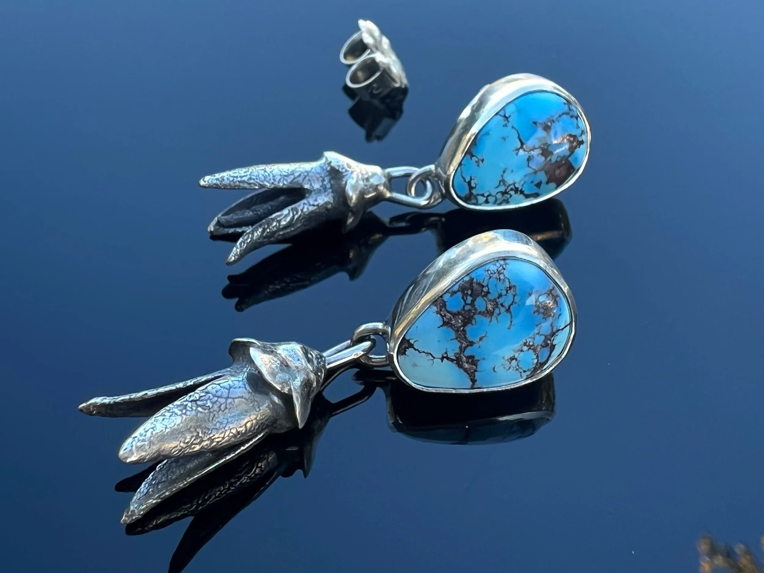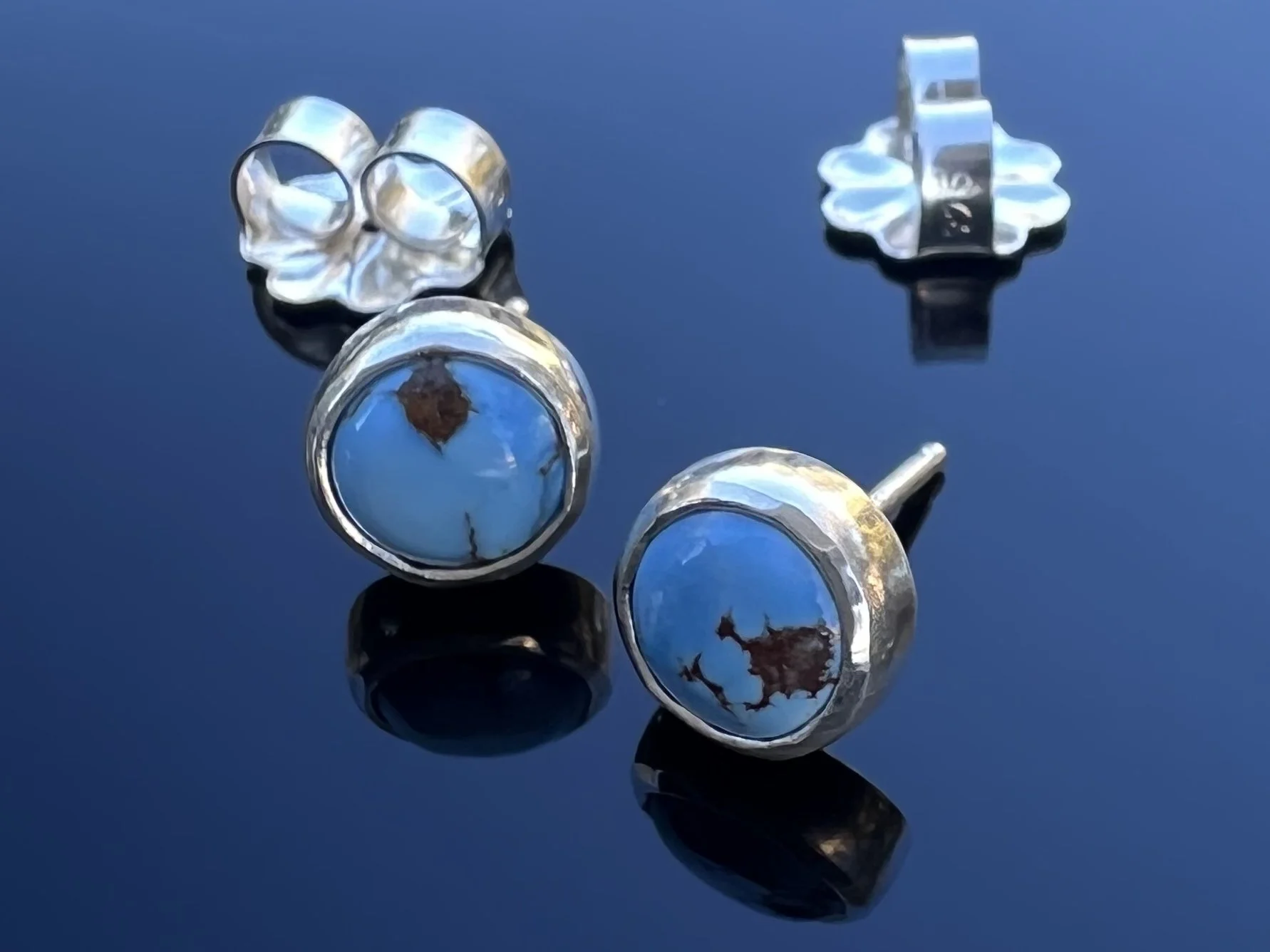 Golden Hills turquoise stud earrings. Hand fabricated. 8mm in diameter, these weigh 1 grams each and come with oversized sterling silver push backs for comfort.